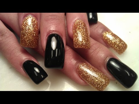 In this nail tutorial, I am demonstrating application of gel color. Gel Color are pure black and an shimmering gold. The gold is actually a gold powder already made to be glittery. When apply gold powder acrylic, you do not need any color on top. Apply gel top coat to seal in the glitter you got yourself some shiny glossy nails! music by danosongs.com