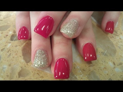 Here is a video of gel polish over fake nails. Easy coloring steps you can follow. The gel color has a tint of glitter which goes very well with the other gold gel color. Gel polish on acrylic nails will usually last you longer than wearing it on your own natural nails! music by danosongs.com